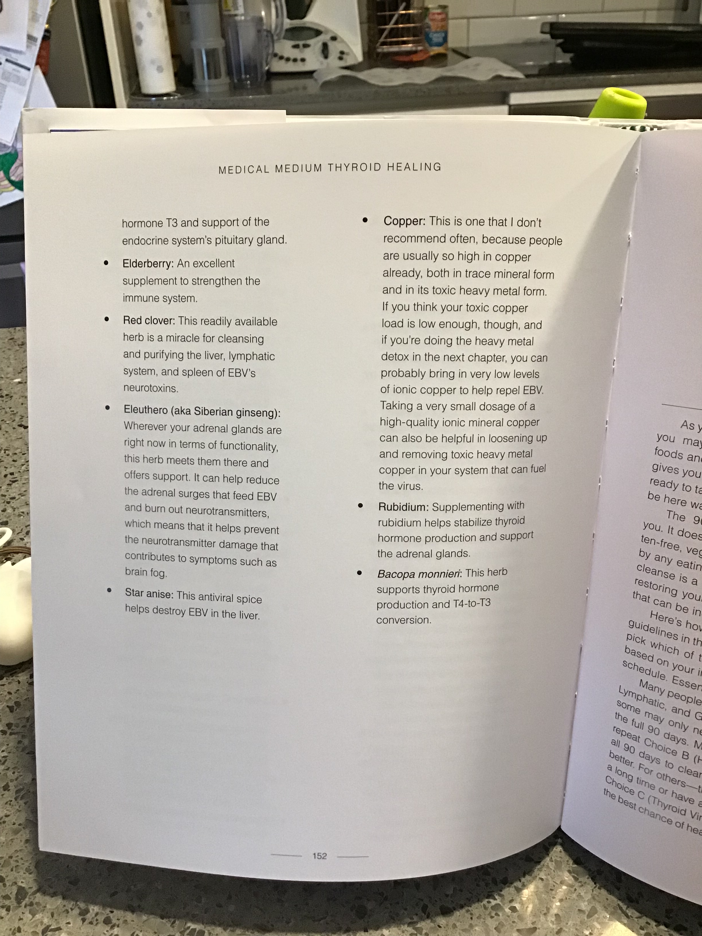 In Chapters 21-24, Anthony writes in detail about foods to avoid, plus powerful foods and supplements that heal the Thyroid, along with a 90 day cleanse ritual of juices, smoothies and some suggested recipe ideas. The cleanse is designed to starve the virus and then rid the body of any toxic EBV ‘corpse’ cells that are left over once the virus cells die. As you do the cleanse and support your thyroid, your symptoms should reduce and the body return to a generally normal function. It may take three months or even up to 18 months depending on what stage you’re in or even how your body responds, as our bodies and circumstances are all different.