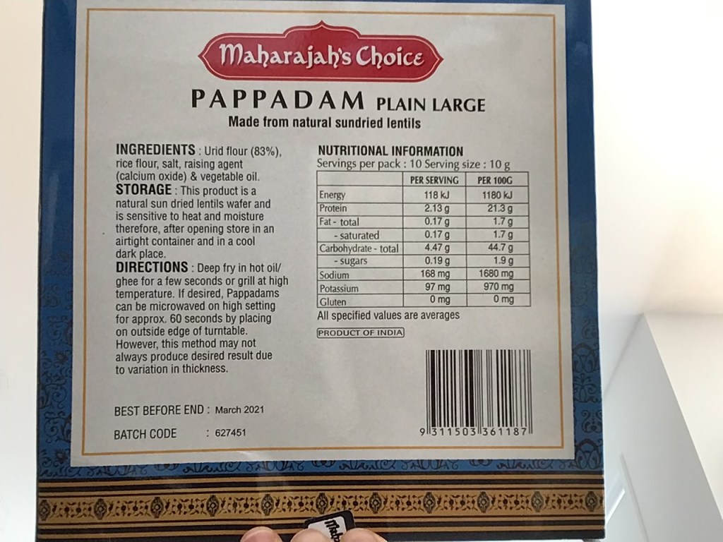 And finally instead of having any roti or naan bread with my Asian dishes, I have been enjoying good old fashioned pappadams!