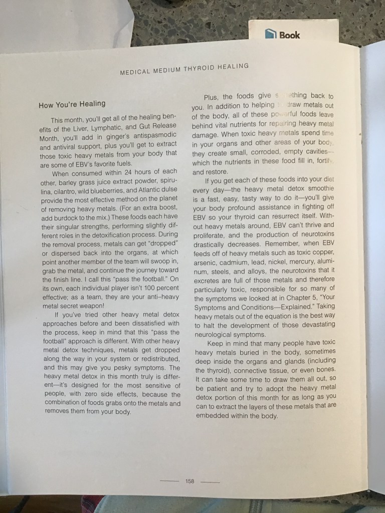 Four weeks down and I have finished the Choice C Thyroid Healing Cleanse month from the Medical Medium’s book Thyroid Healing! This was the hardest and most involved month as far as food prep and consumption goes, but it is also the most hard-hitting to kickstart the process of ridding my body of the Epstein-Barr Virus (EBV).
