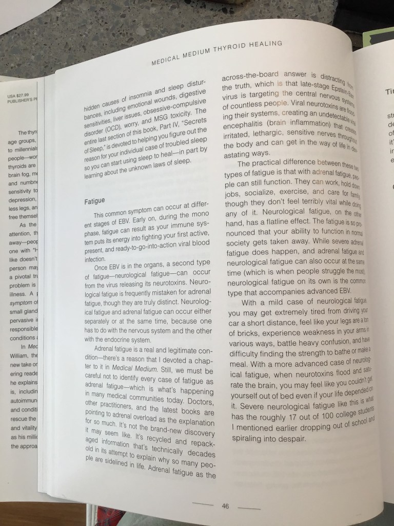 There is an excellent Chapter in Thyroid Healing called ‘Your Symptoms and Conditions – Explained’. Please see below excerpts of explanations given by Medical Medium Anthony William, about some of my symptoms, for your information. There are many others listed and I HIGHLY recommend you buy yourself this book and others in the Medical Medium series if anything in my blog rings true to you. They are available at any good bookstore or online.